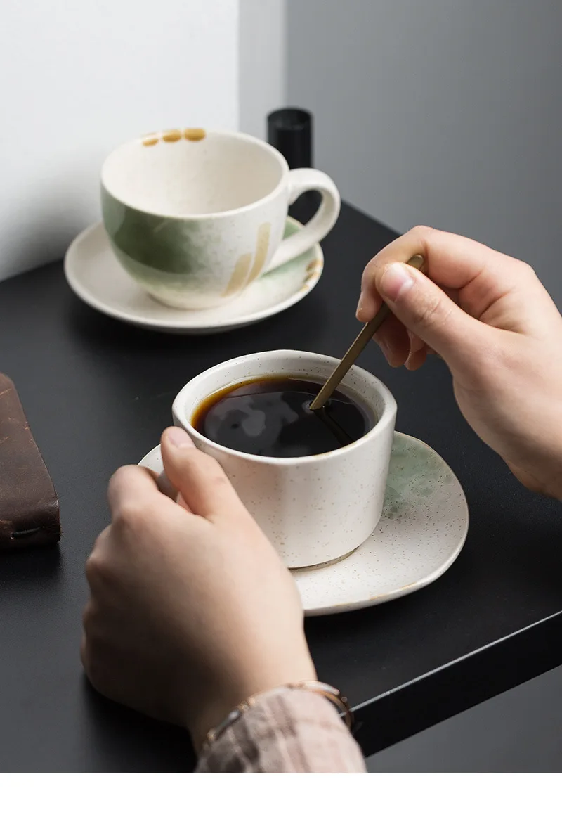 200/210/250ml Retro American Ceramic Coffee Cup Plate Set Luxury Office Afternoon Tea Water Cup And Dish Couple Mugs With Tray