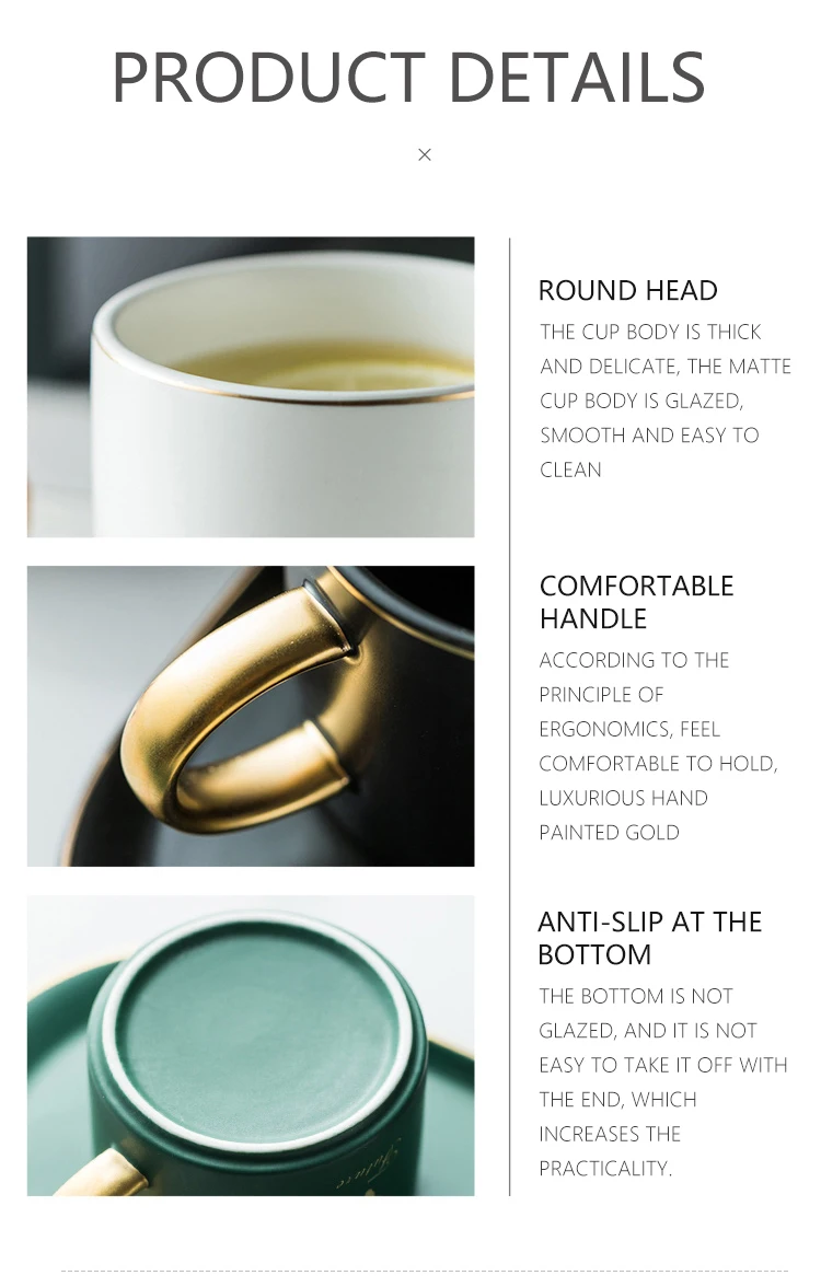 European Luxurious Gold Rim Ceramics Coffee Cups And Saucers Spoon Sets With Gift Box Tea Soy Milk Breakfast Mugs Dessert Plate