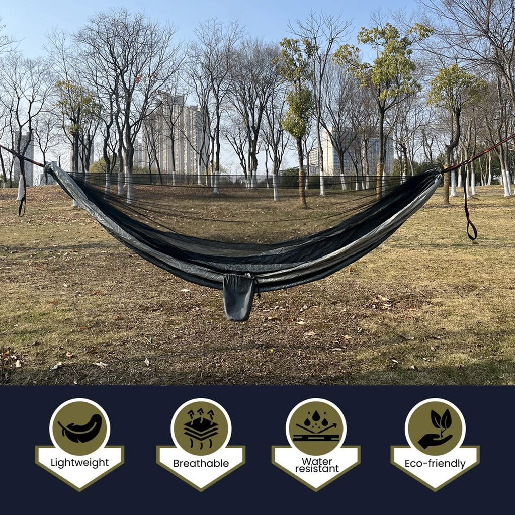 Camping hammock with mosquito net and Ultralight Portable Hammock with Adjustable Ridgeline.Outdoor hammock 210T Nylon parachute with 2 tree strap,Ideal for Camping,Hiking, Backpacking.