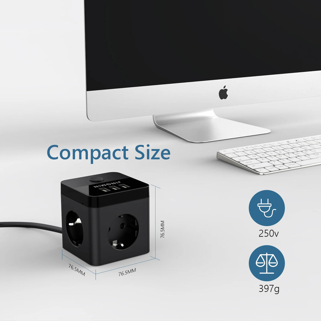 JINGMIN Cube Regleta with switch, just press the switch to turn off the power. This saves energy and does not require plugging in.