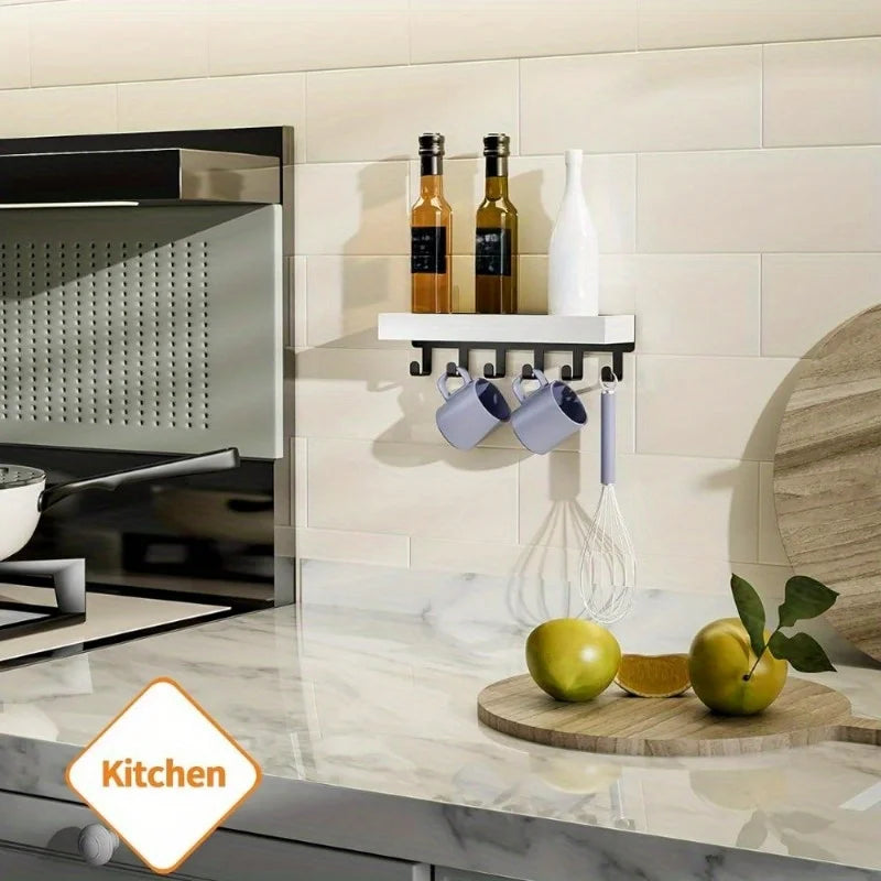Space-Saving Design: Featuring a compact design with a shelf and six key hooks, this wall-mounted key holder maximizes your space while keeping your keys organized and easily accessible.