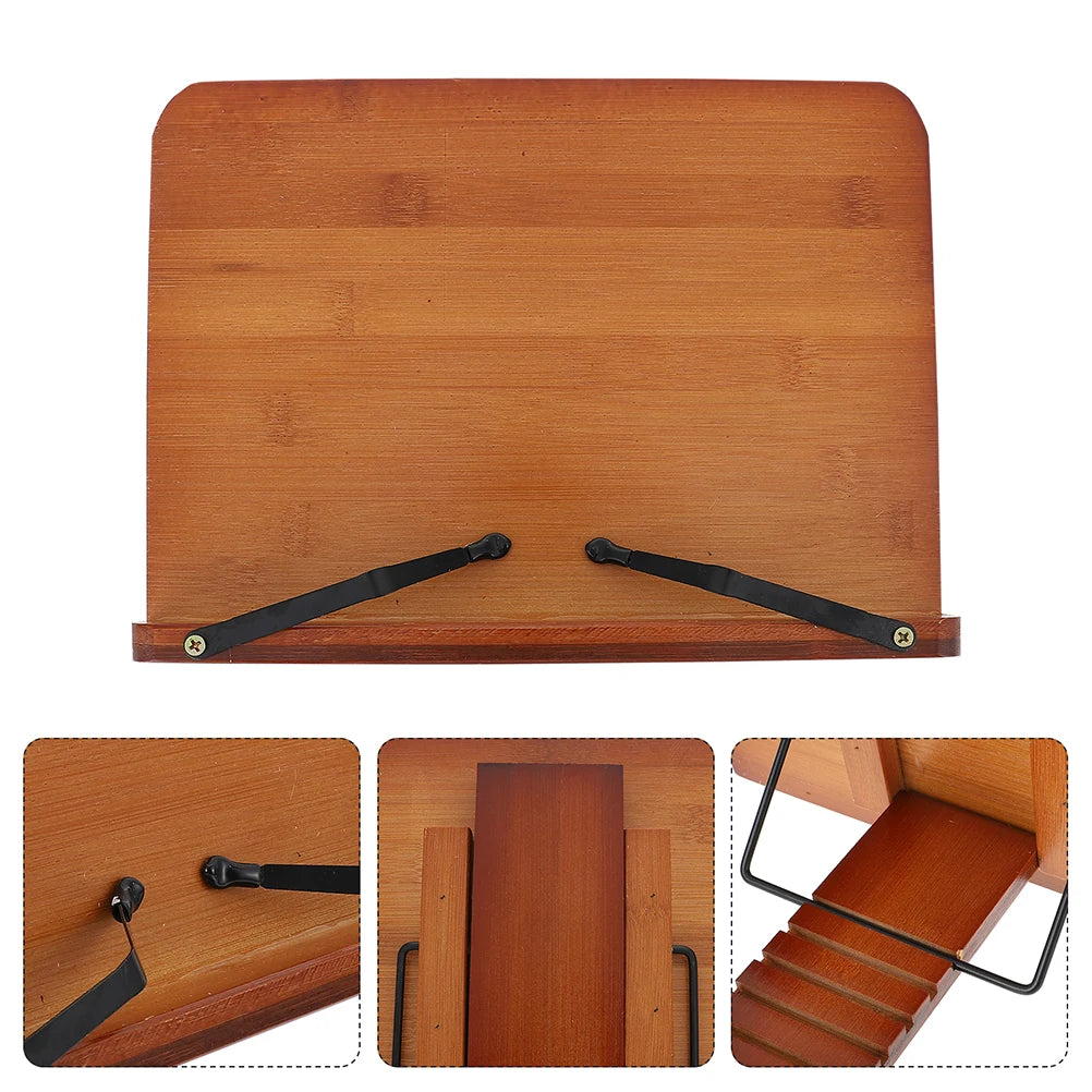 Adjustable Bamboo Book Stand Desktop Reading Rack Laptops Support Home Office Classroom Library Study Textbook Holder Music