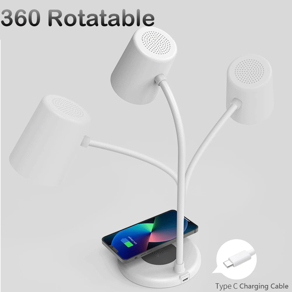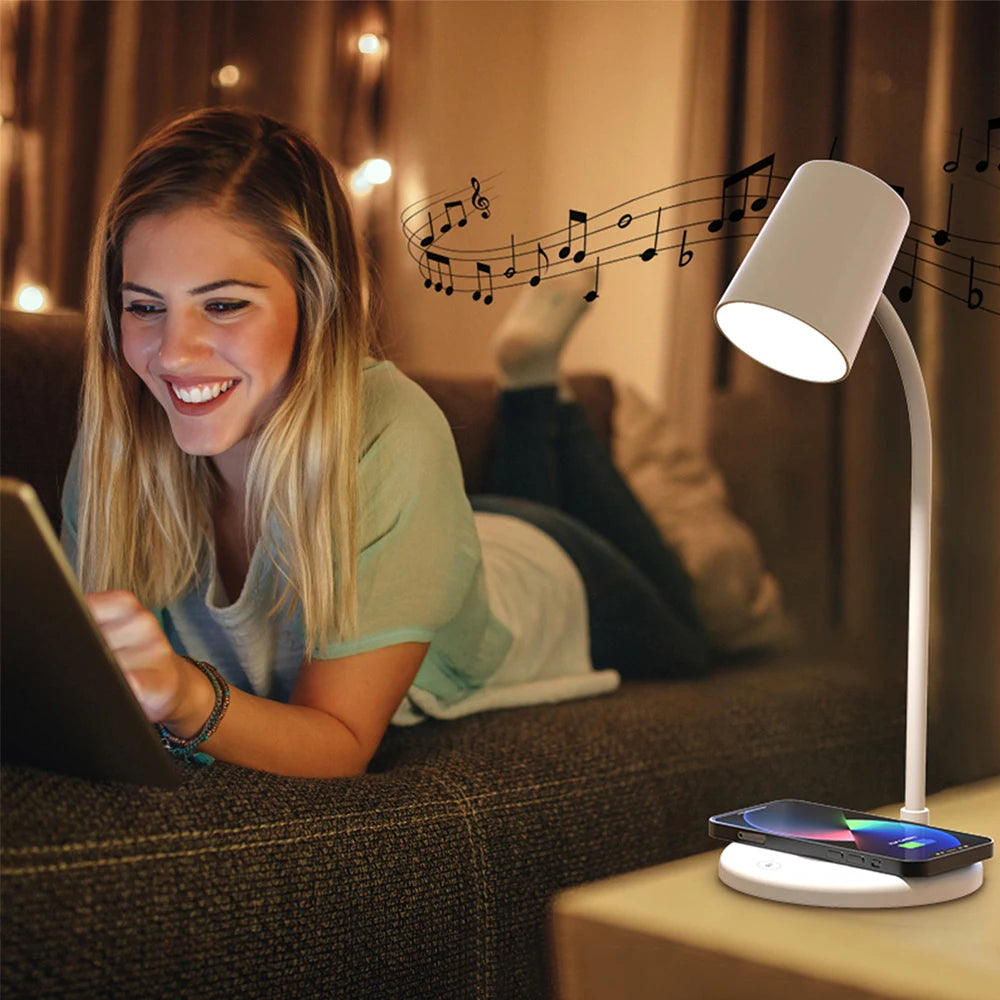 Dimmable LED Table Lamp Bluetooth Speaker with Fast Wireless Charger 360 Rotate Eye Desktop Reading Night Lights