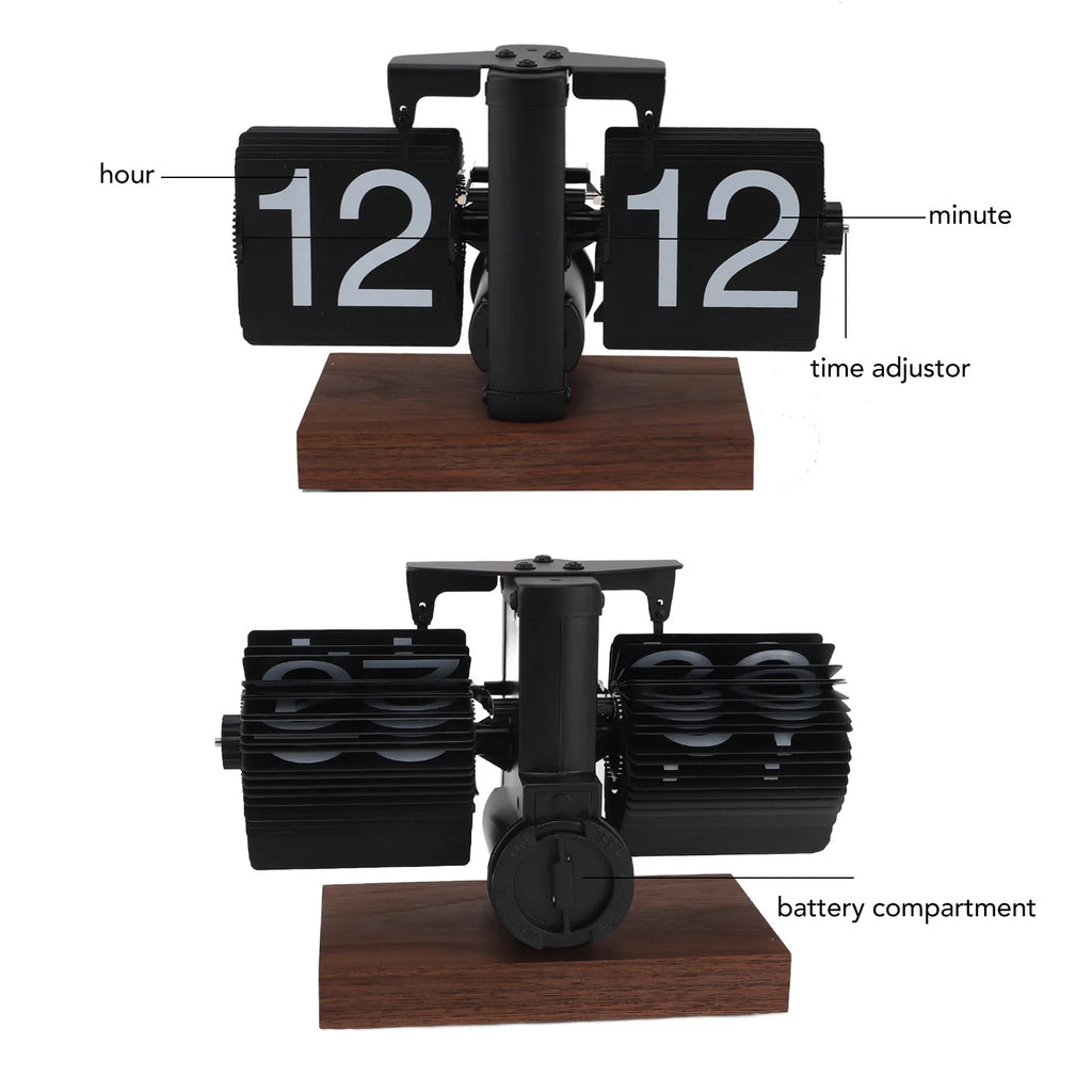 Flip Desk Clock Vintage 24 Hours Anti Slip Base Rotary Knob Adjustable Battery Powered Digital Flip Down Clock for Living Room Office